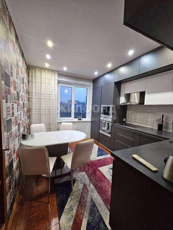 В квартире выполнен качественный ремонт с использованием современных материалов. Окна ПВХ, потолки многоуровневые и выполнены из гипсокартона со встроенными точечными светильниками, на полу ламинат и керамическая плитка. Большой застекленный балкон. Межкомнатные двери заменены. Кухня-столовая площадью 10 кв. м., что встречается нечасто, это позволяет разместить большой стол для всей семьи. Санузел совмещен, отделан кафелем, установлена современная сантехника.