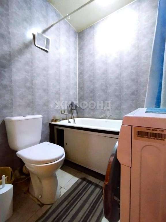 Санузел совмещённый, стены обшиты панелями ПВХ для лёгкости в уходе.