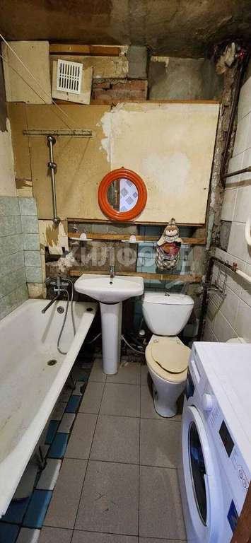 Сан. узел совмещенный, требует ремонта.