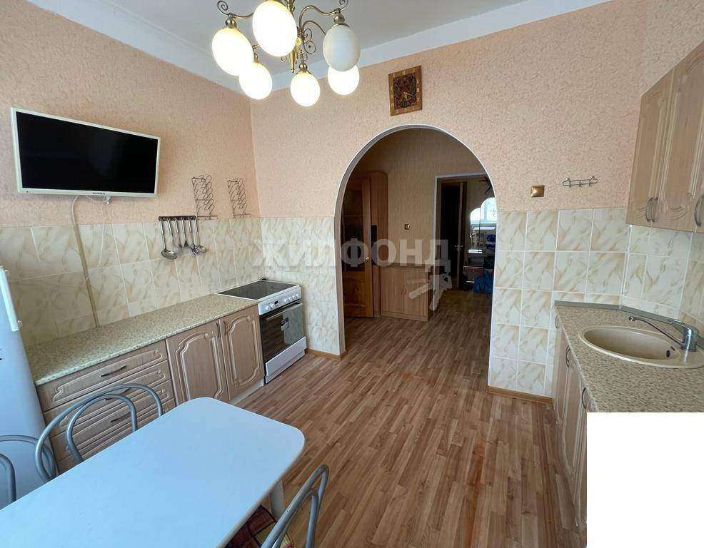 Кухня достаточно просторная. Кухонный фартук отделан кафельной плиткой с помощью которой легко поддерживать чистоту. Кухонный гарнитур станет приятным бонусом.
