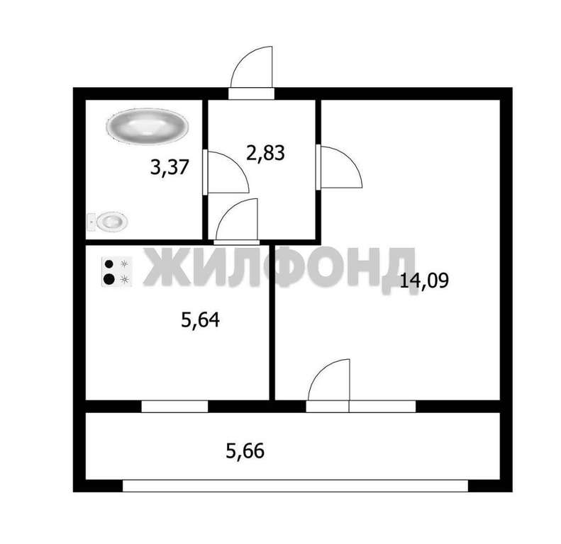 Жилая площадь зал 15 кв. м., отдельно кухня 6 кв. м., санузел совмещённый, лоджия остеклена 6 кв. м., карман 8 кв. м.