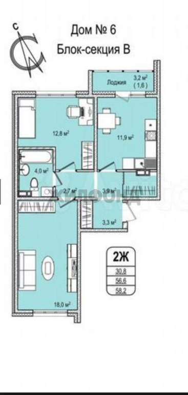 - 58.00 м2