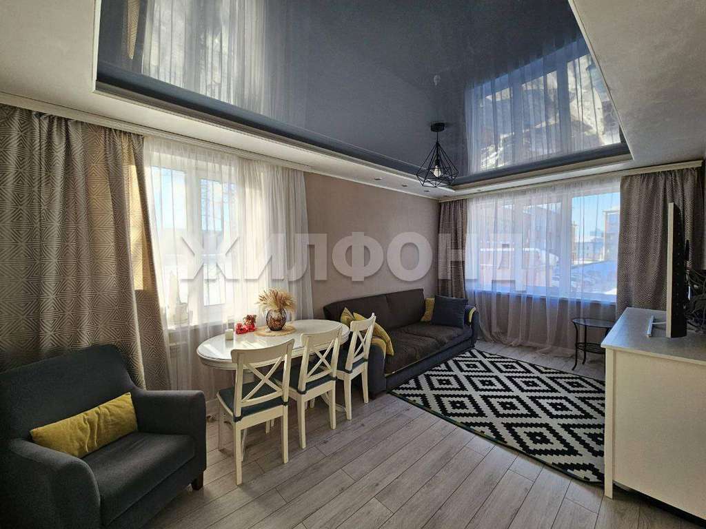В квартире выполнен ремонт, установлены пластиковые окна, на полу выложен ламинат, так же заменена проводка, натяжной потолок по всей квартире, в прихожей установлен шкаф купэ, совмещенный с. у выложен кафелем.