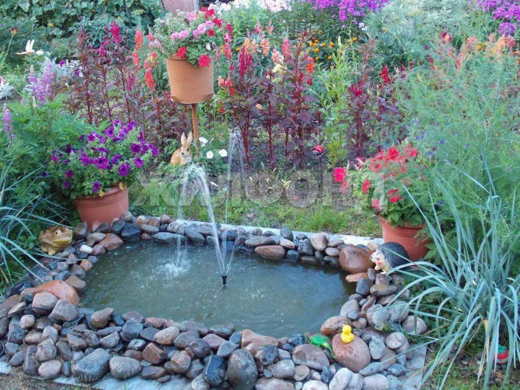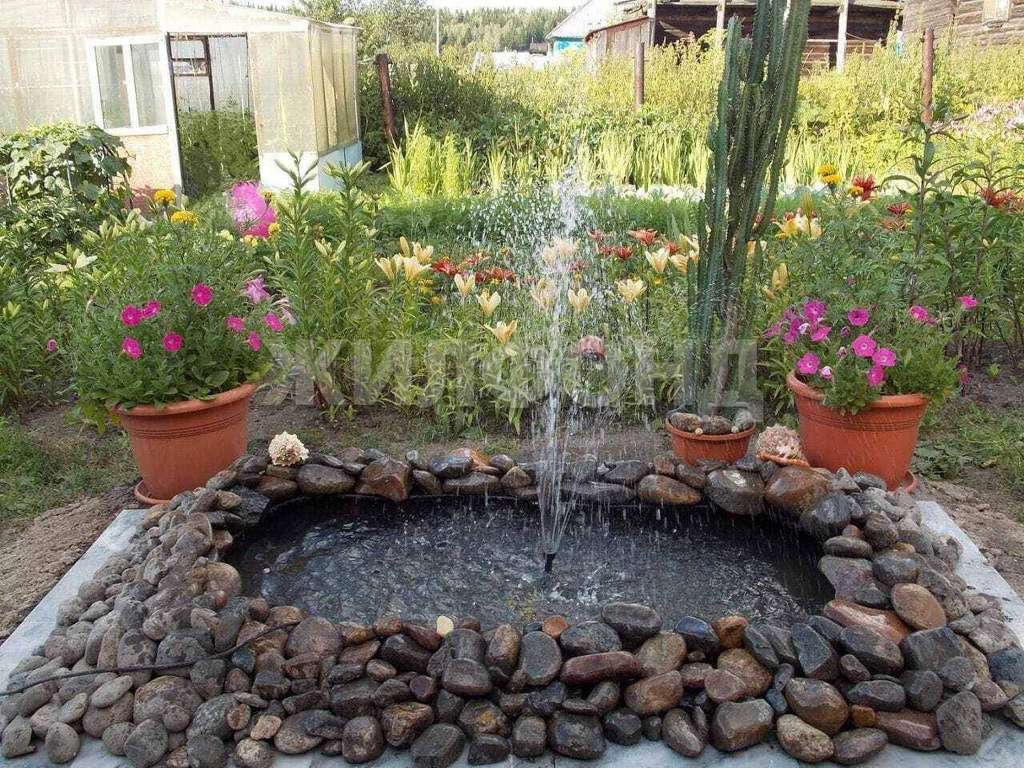 - Водоем фонтан добавляет атмосферу уюта и расслабления на приусадебном участке.