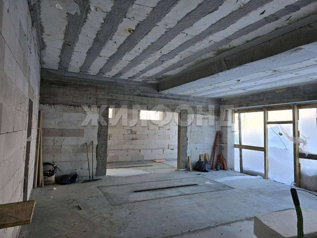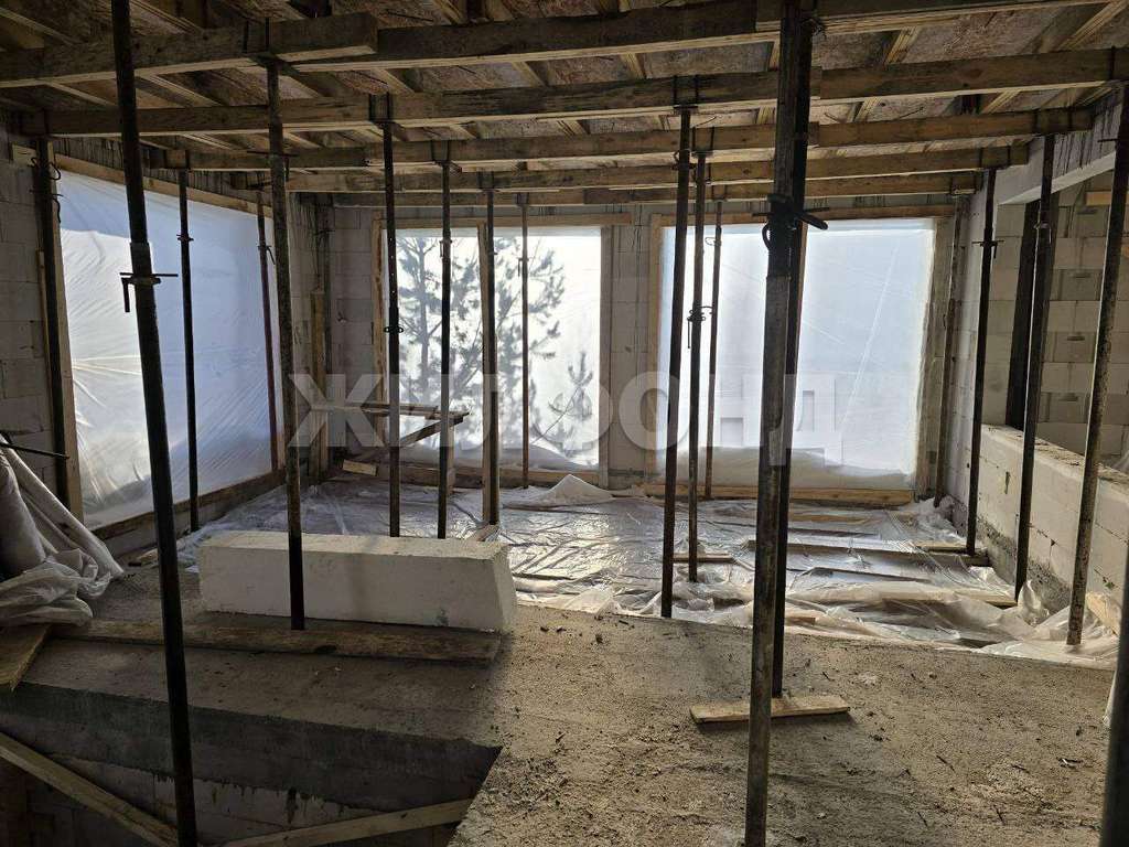 на монолитной Ж. Б плите толщиной 400 мм возведены стены из газобетона толщиной 400 мм, установлено перекрытие - монолитная часторебристая плита, проведена канализация, ввод воды и электроснабжения, отопление водяной пол. Газ подведен к участку.
